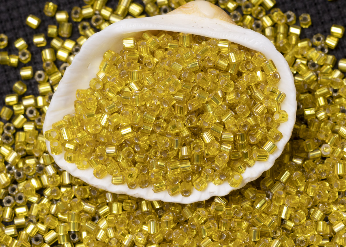 Бисер Чехия рубка 10/0 50г 87010 прозрачный желтый с серебряным прокрасом